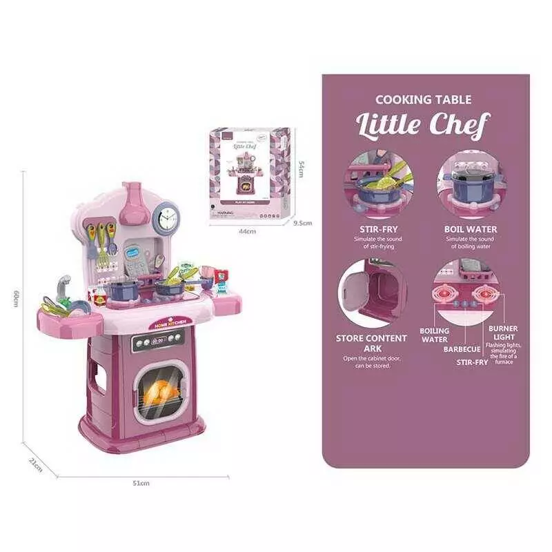 Кухня 661-507 (6) 51х21х60 см, 38 елементів, підсвічування, звуки, на батарейках, муляжі продуктів, посуд, в коробці