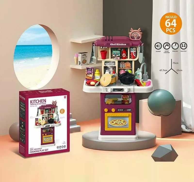 Кухня 922-121 (12) висота: 75 см, підсвічування, парогенерація, звук, автоматична подача води, 64 елементи, посуд та їжа, в коробці