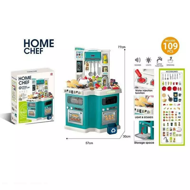 Кухня 922-174 (6) 57х30х77 см, 109 елементів, помпова подача води, парогенерація, підсвічування, звуки, на батарейках, дверцята відчиняються, в коробц