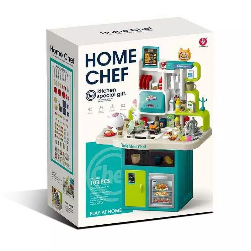 Кухня 922-178 (4) 115 елементів, висота - 102 см, звук, підсвічування, парогенератор, ллється вода з крана, посуд, продукти, наліпки, в коробці