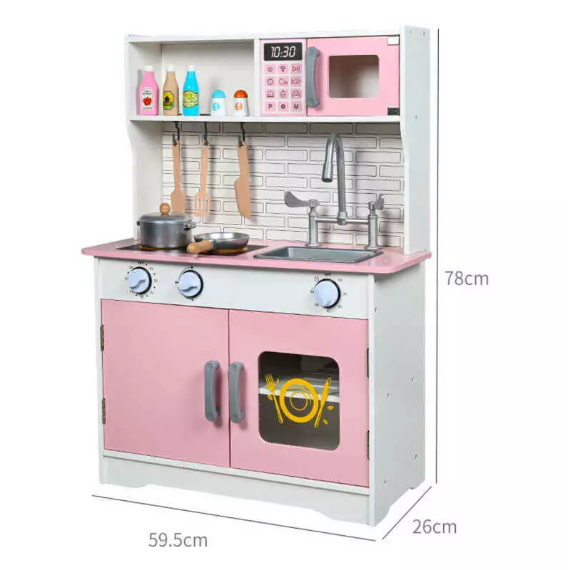 Кухня C 69830 (2) дерев`яна, 59.5х26х78 см, духова піч, сковорідка, кастрюля, кухонне приладдя, в коробці