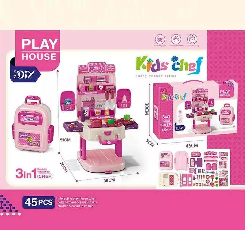 Кухня T 2157 D (24/2) 45 предметів, каструлі, сковорідки, продукти, столові прибори, кухонні аксесуари, в коробці