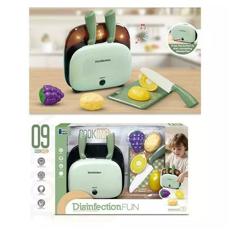Кухонний набір C 22 (48) підсвічування, звукові ефекти, дезінфектор, 3 ножі, дошка для нарізання, продукти на липучках, в коробці