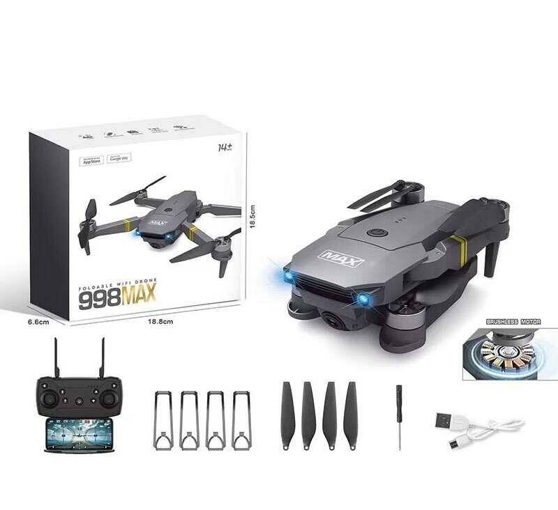 Квадрокоптер на радіокеруванні 998 MAX (36) підсвічування, знімний акумулятор, пульт - 2.4 GHz, 4К HD камера, WI-FI, в коробці
