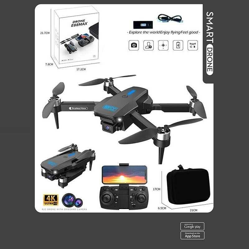 Квадрокоптер на радіокеруванні E 88 MAX (36) акумулятор, USB-кабель, викрутка, пульт, підсвічування, HD камера, сумка для зберігання,додаток,в коробці