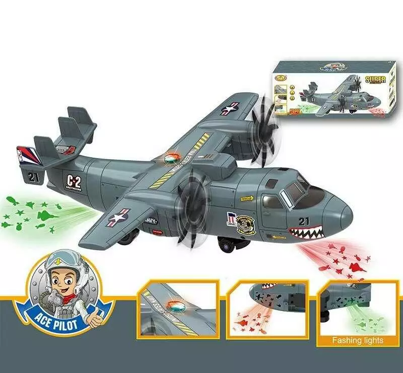 Літак 286-47 (48/2) колесо вільного ходу, підсвічування, звуки, проєкція, на батарейках, автоматичні оберти лопатей, в коробці