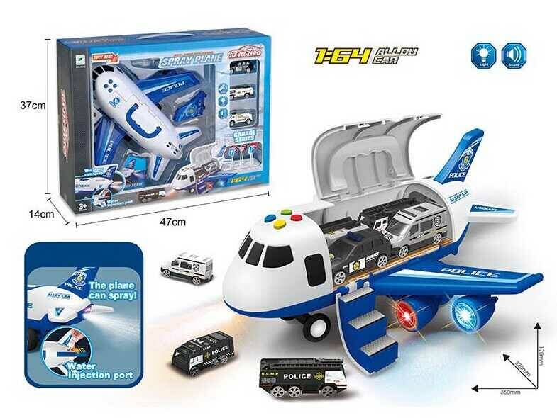 Літак 660 А-312 (12/2) "Поліція", інерція, парогенератор, 3 машинки, на батарейках, світло, звук, дорожні знаки, в коробці
