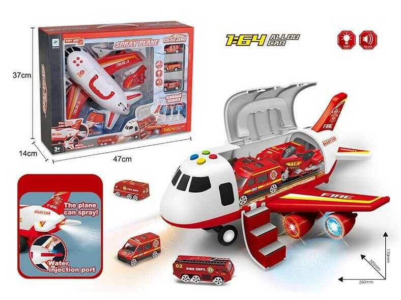 Літак 660 А-313 (12/2) "Пожежна служба", інерція, парогенератор, 3 машинки, на батарейках, світло, звук, дорожні знаки, в коробці