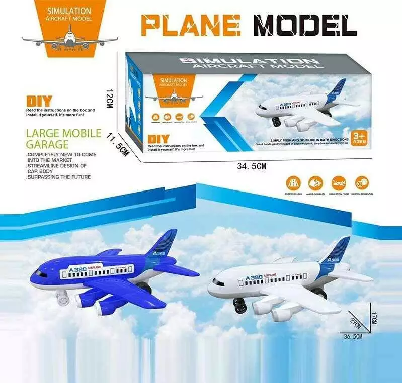 Літак 896 (72/2) 2 кольори, розмір: 34х30х18 см, інерція, гумові колеса, в коробці