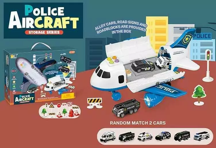 Літак HS 8009 C (16) звук, світло, інерція, рухлива платформа, 2 машинки, у коробці