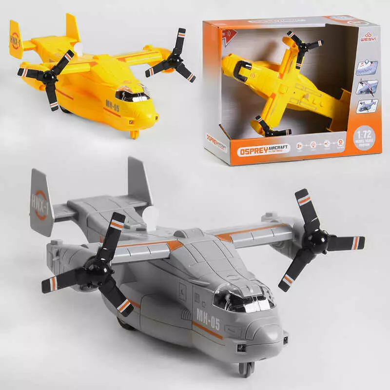 Літак WY 490 AB (30) "Військовий", 2 кольори, інерція, 2 положення гвинтів, звуки роботи гвинтів, підсвічування носа і хвоста, в коробці