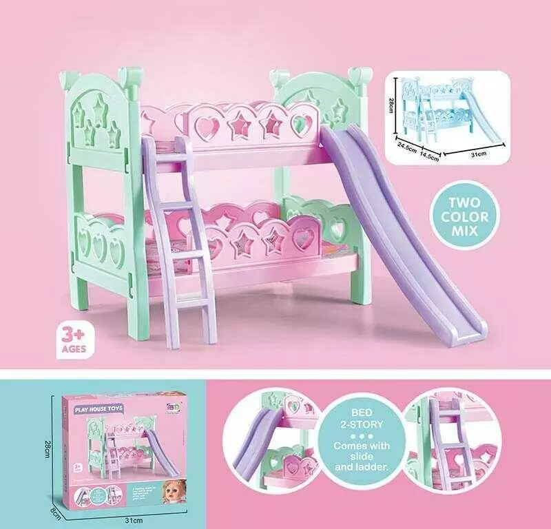Ліжко для ляльки CS 8878 (24) двоярусне, з гіркою, ковдра, подушки, в коробці