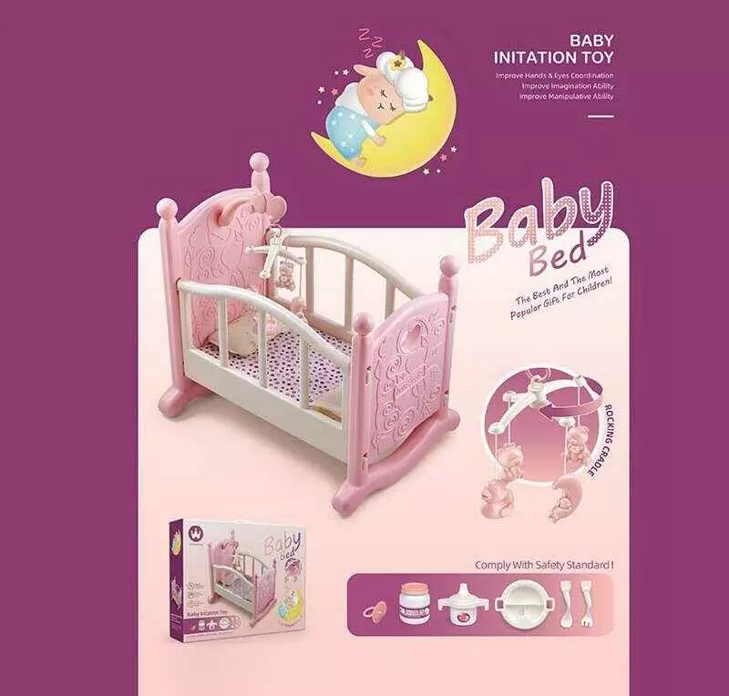 Ліжко для ляльки W 6909 B (12) 50х38х50 см, мобіль, посуд, пустушка, в коробці