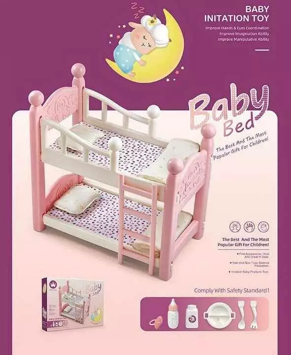 Ліжко для ляльки W 6910 B (12) двоповерхове, 50х38х55, посуд, пустушка, в коробці