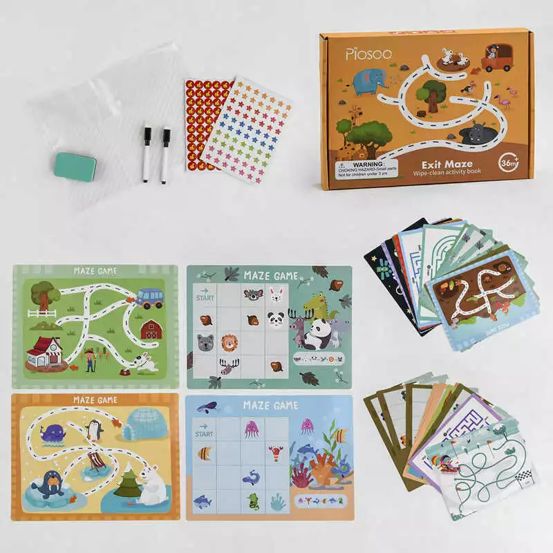 Логічна гра C 47861 (36) "Багаторазова книга - лабіринт", 30 ігрових карток, два фломастери, папка, наклейки, в коробці