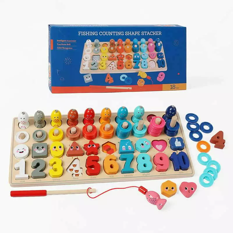Логічна дерев’яна дошка C 74155 (24) дерев’яна, геометричний сортер, цифри, магнітна риболовля, в коробціртер, цифри, магнітна риболовля, в коробці
