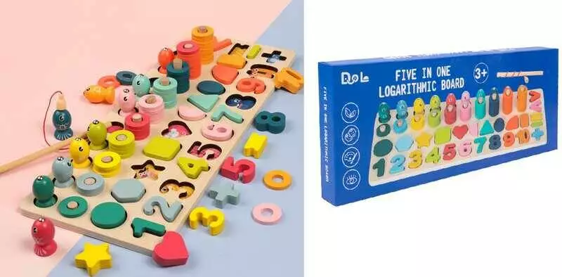 Логічна дерев’яна дошка C 75498 (24) магнітна риболовля, кілочки та кільця, сортер з фігурами та цифрами, в коробці