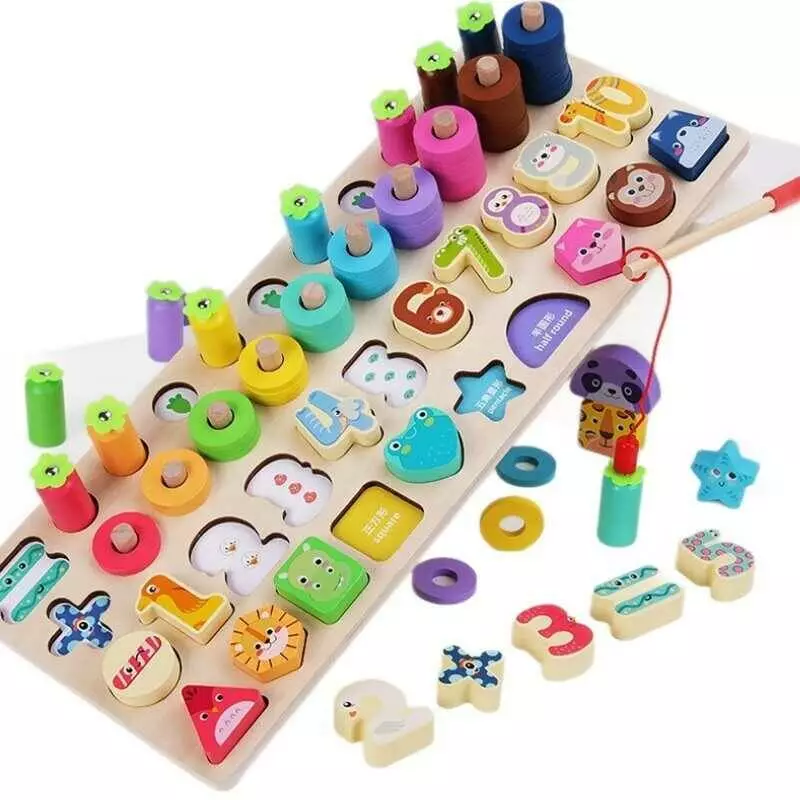 Логічна дерев’яна дошка C 75548 (18) сортер, кілочки, магнітна риболовля, цифри, математичні знаки, в коробці