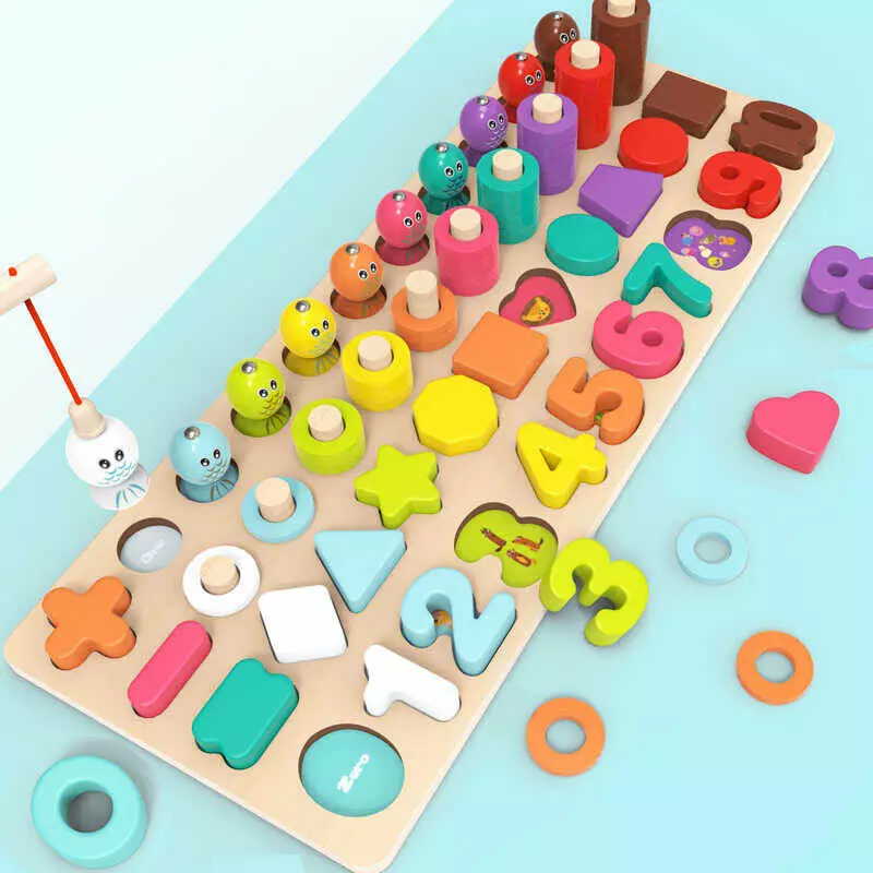 Логічна дерев’яна дошка C 74284 (28) цифри, геометричні форми, магнітна риболовля, гра з кілочками, в коробці
