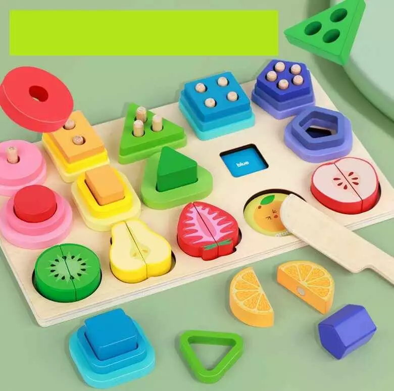 Логічна дерев’яна дошка C 75294 (24) дошка 30х18 см, половинки фруктів на магнітах, фігури, кілочки, назви кольорів/фруктів англ, в коробці
