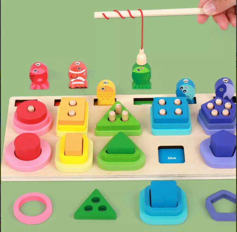 Логічна дерев’яна дошка C 75296 (33) дошка розміром 30х15 см, магнітна риболовля, геометричні фігури, кілочки, назви кольорів англійською, в коробці