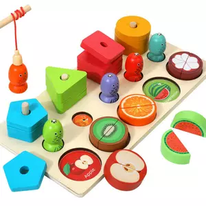 Логічна дерев’яна дошка С 74415 (40) гра з кілочками, назви англ. мовою, магнітна риболовля, сортер за кольорами та формами,фрукти-вкладиші, в коробці