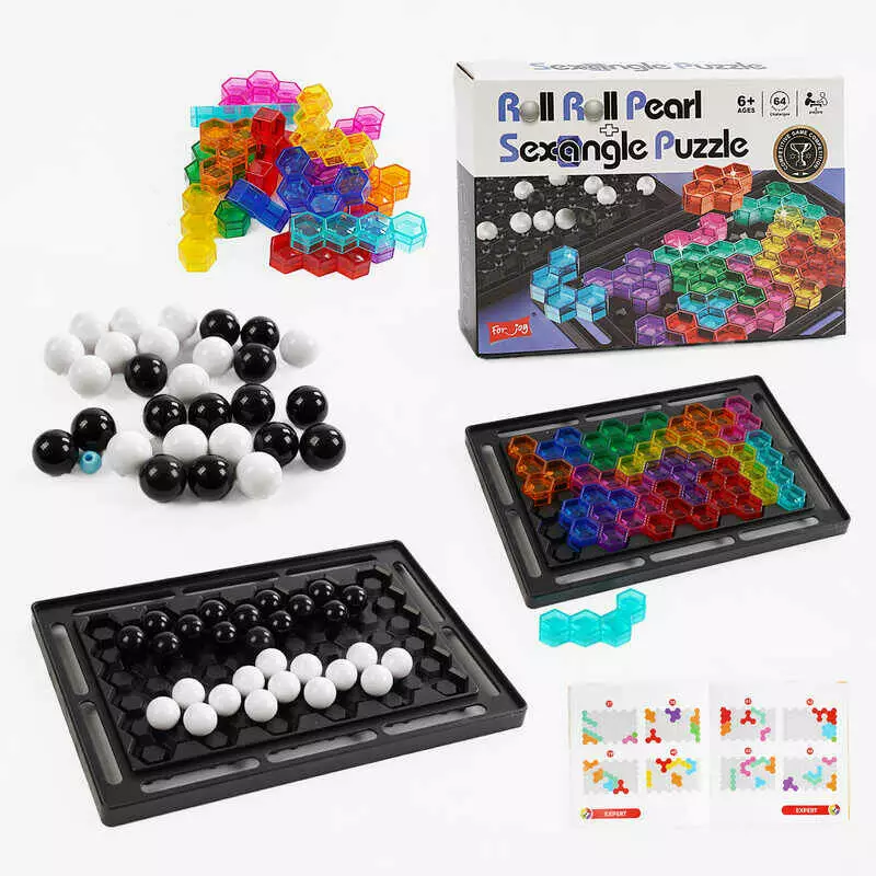 Логічна гра 929-35 (48) 3в1, двостороннє поле, 16 кольорових елементів, 14 кульок, інструкція із завданнями, в коробці