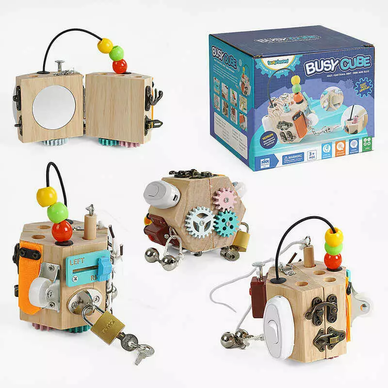Бізіборд дерев`яний C 64873 (48) дерев’яний куб, 10 міні-ігор, в коробці