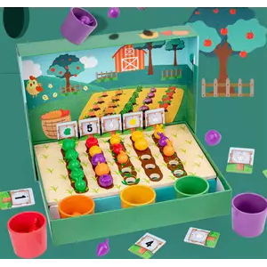 Логічна гра C 72529 (22) дерев’яна основа, 5 чаш для сортування, 25 гумових овочів, 10 двосторонніх карток із завданнями