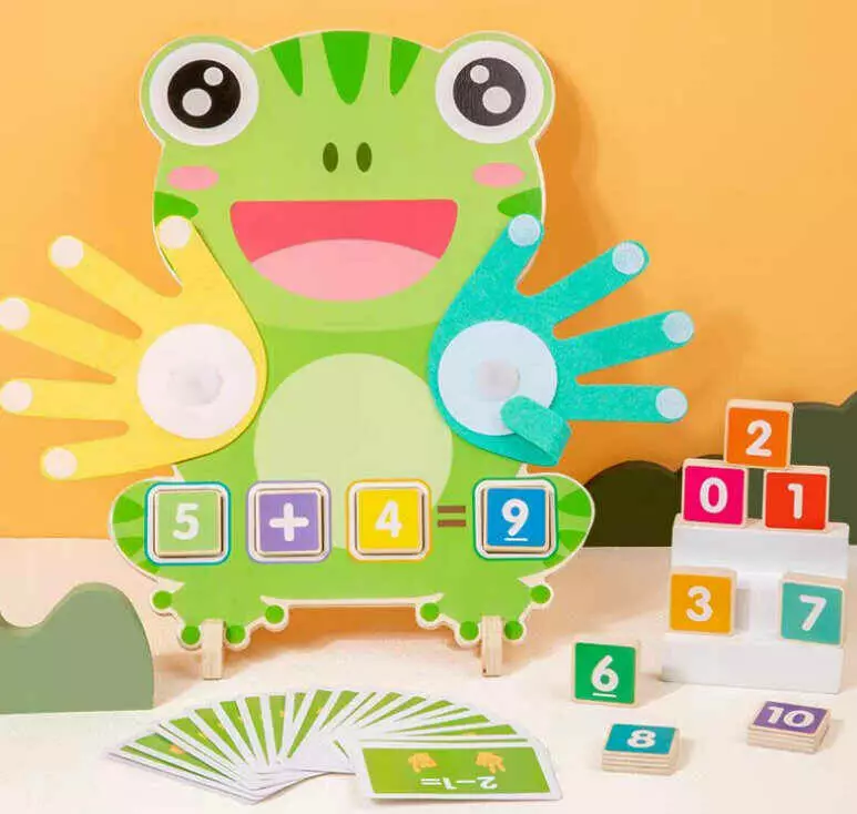 Математична дошка C 75291 (36) "Жабка", двосторонні кубики з цифрами, двосторонні картки із прикладами, долоні з липучками, в коробці