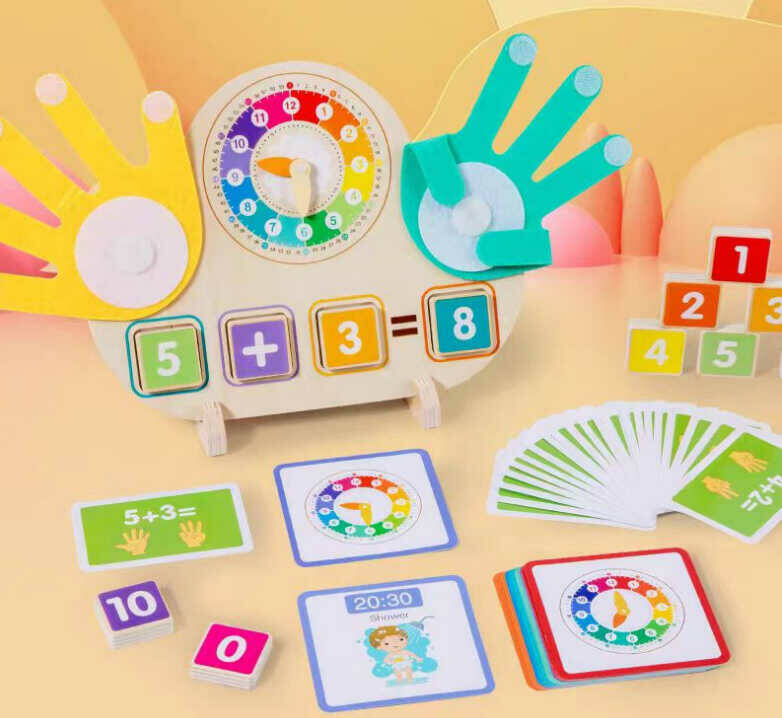 Математична дошка C 75292 (40) двосторон. кубики з цифрами, годинник, рухомі стрілки, картки із приклад. та розпорядком дня англ., липучки, в коробці