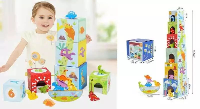 Логічна гра C 75553 (24) кубики-будиночки, цифри, піраміда висотою 63.5 см, дерев’яний балансир, фігурки динозаврів, в коробці