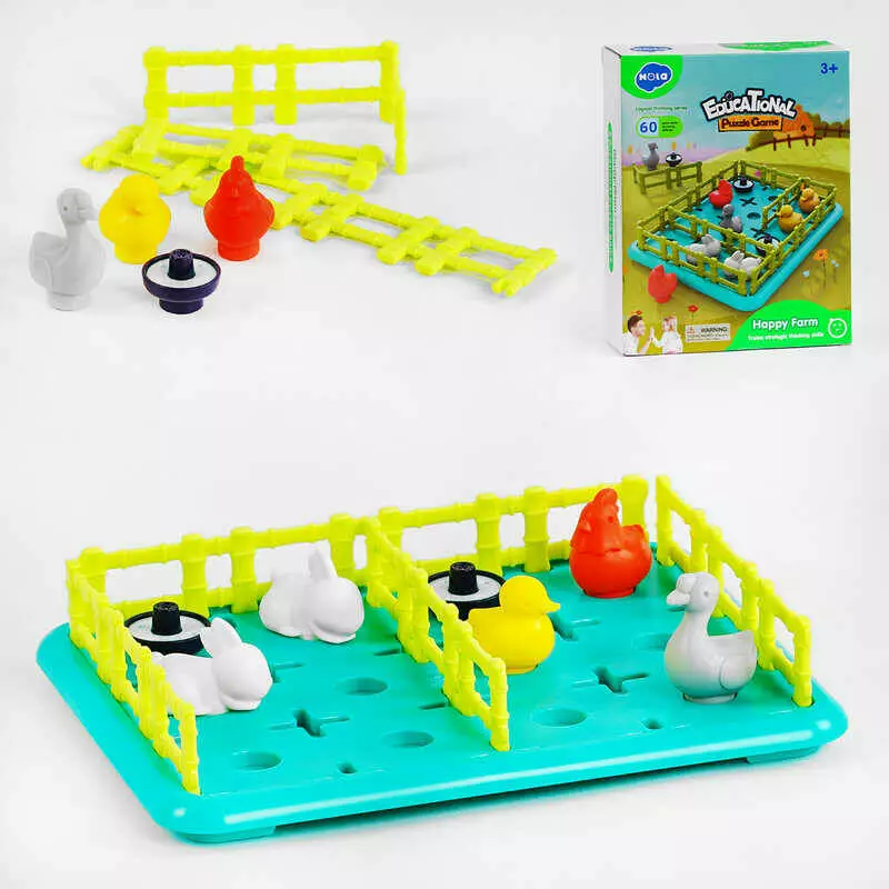 Логічна гра E 7977 (24) "Hola", "Свійські тварини", 8 тваринок, поле, будування загонів, в коробці