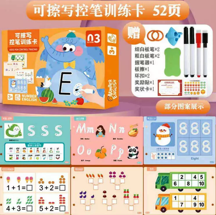 Логічна книжка С 75488 (60) картки з прописами та завданнями, математичні приклади, маркер “пиши-стирай”, літери англійського алфавіту, в коробці