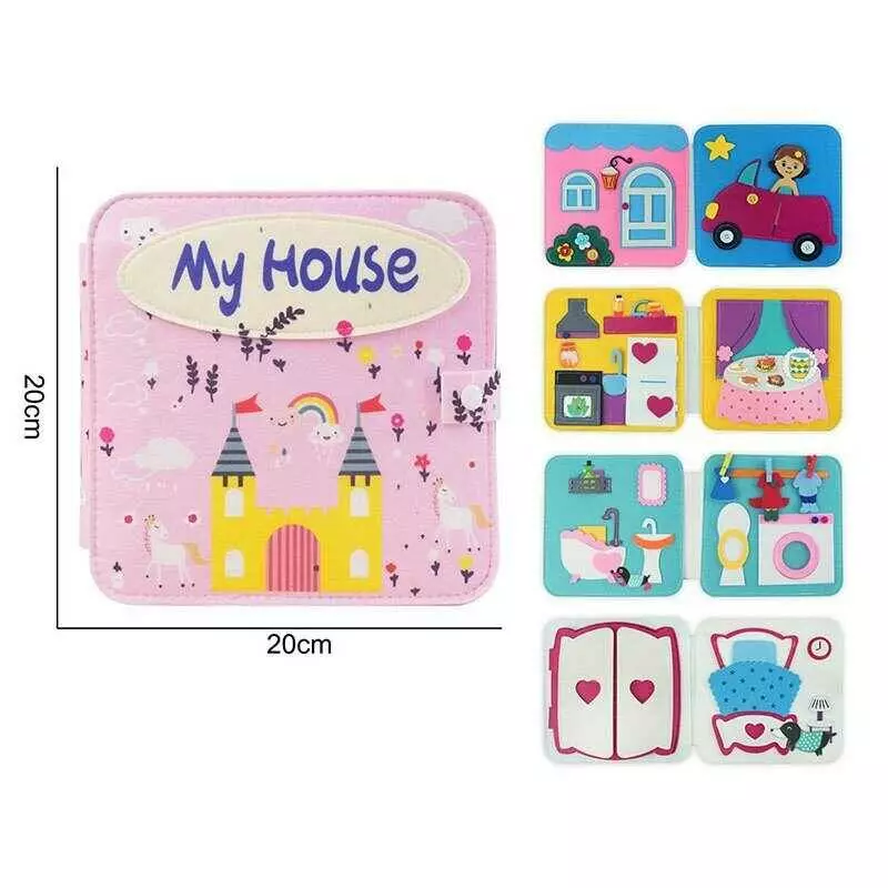 М`яка книжка-бізіборд 25077 (50) “Мій будинок”, елементи на липучках, рухомі елементи, прищіпки, в пакеті