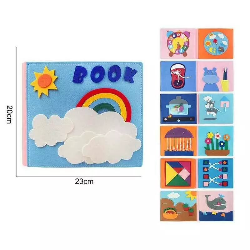 М`яка книжка-бізіборд 25082 (40) фетр, розмір 23х20 см, сюжетні ігри: сад, море, кухня, циферблат з рухомими стрілками, погода