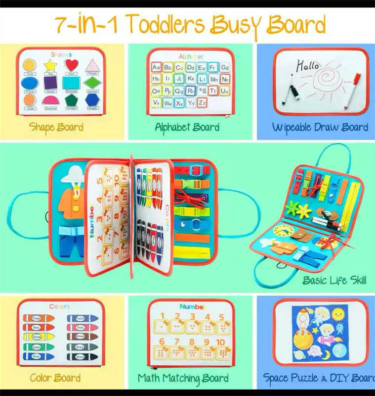 Логічна папка C 70899 (38) 7в1, фетрова, елементи на липучках, англ. абетка, форми, кольори, цифри, дошка пиши-стирай, 2 маркери, в пакеті