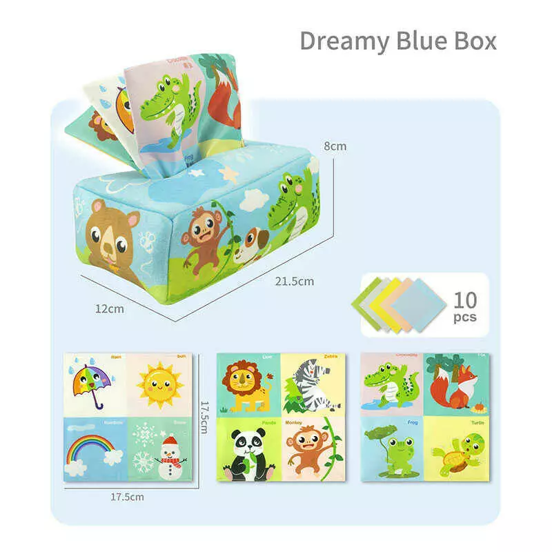Розвивальна гра YB 2 (96) “Серветниця”, текстиль, 13 серветок, тварини, пори року, шелестючі елементи, англійські назви, в пакеті