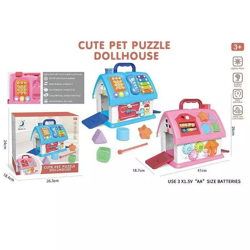 Логічний будинок HL 311-11 (16/2) 2 кольори, світло, звуки, мелодії, сортер, пальчикові ігри, ксилофон, 5 нот, рахівничка, пискавка, в коробці