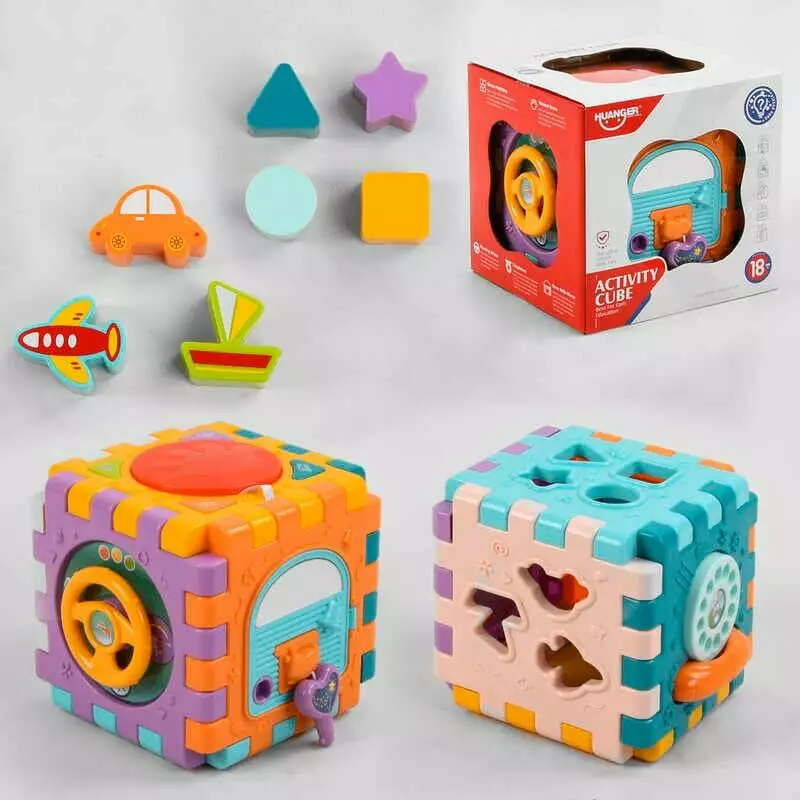 Логічний куб НЕ 0530 (12) на батарейках, підсвічування, мелодії, звуки тварин, сортер, в коробці