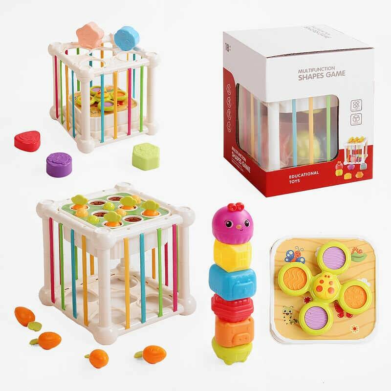 Логічний куб YL 1303 DA (48) морквяні грядки, сортер, спінер, стукалка, еластичні решітки, в коробці