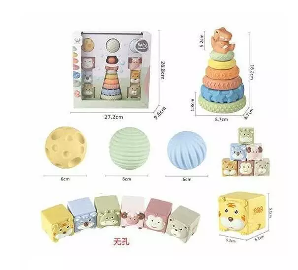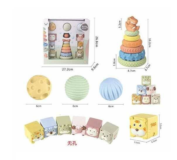 Логічний набір 628-138 (24/2) сенсорні кульки, кубики, пірамідка, гумові елементи, в коробці