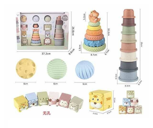 Логічний набір 628-139 (24/2) сенсорні кульки, кубики, 2 пірамідки, гумові елементи, в коробці