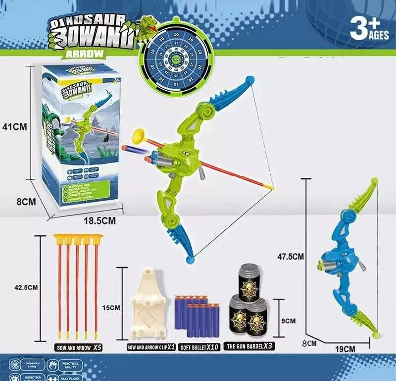 Лук 316-1 (48/2) стріляє стрілами з присосками та м’якими патронами, 5 стріл, 10 патронів, мішені, тримач для стріл, в коробці