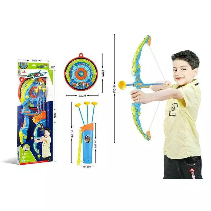 Лук 6043 (36/2) довжина 61 см, підсвічування, футляр для стріл, мішень, 3 стріли з присосками, в коробці
