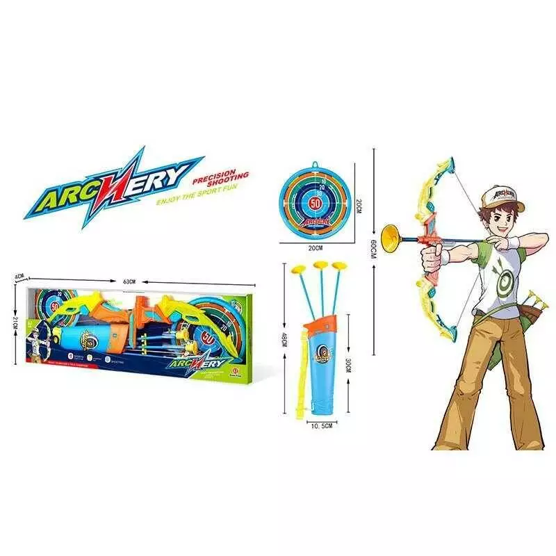 Лук 8002 (48/2) довжина 60 см, підсвічування, футляр для стріл, мішень, 3 стріли з присосками, в коробці