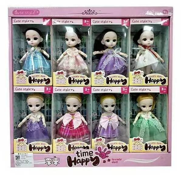 Набір ляльок 1910 Q2 (24/2) ЦІНА ЗА 8 ШТУК В БЛОЦІ, 15 см, імітація скляних очей, шарнірні суглоби, в коробці