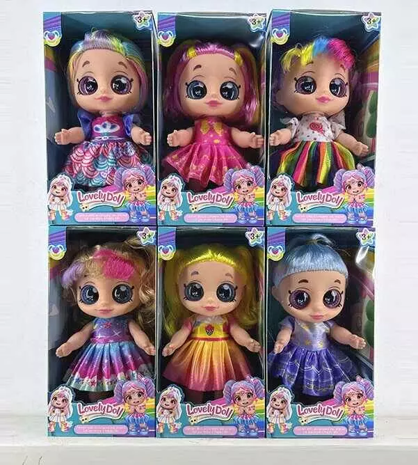Лялька 212 A (120/2) 6 видів, висота 22см, підсвічування, весела пісенька, гумова голова і кінцівки, знімний одяг, в коробці, ВИДАЄТЬСЯ МІКС