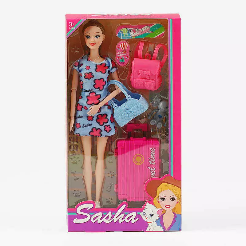 Лялька 51817 (60/2) висота 29 см, валіза, сумка, рюкзак, знімне взуття, в коробці