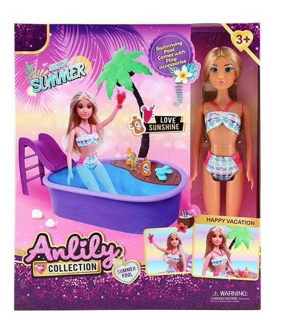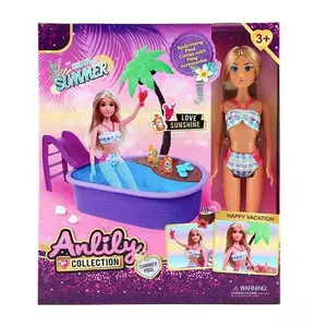 Лялька 616111 (24) висота: 29.5 см, знімний одяг та взуття, басейн: 25.5х18.5х6.5 см, гірка, пальма, аксесуари, в коробці